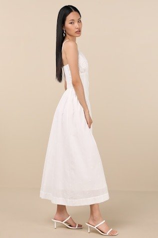 Lulus Zahrah White Eyelet Embroidered Button-Front Midi Dress